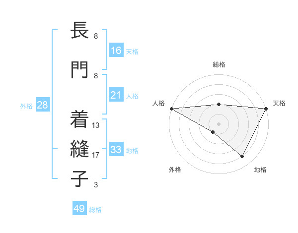 長門 着縫子さんを姓名の画数から五運を鑑定