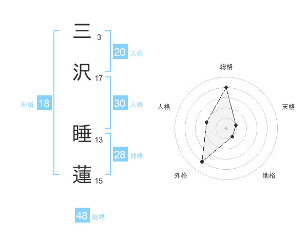 三沢 睡蓮さんの総格は48画の4点!
