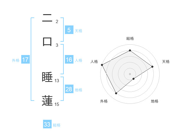 二口 睡蓮さんの天格は5画の4点!