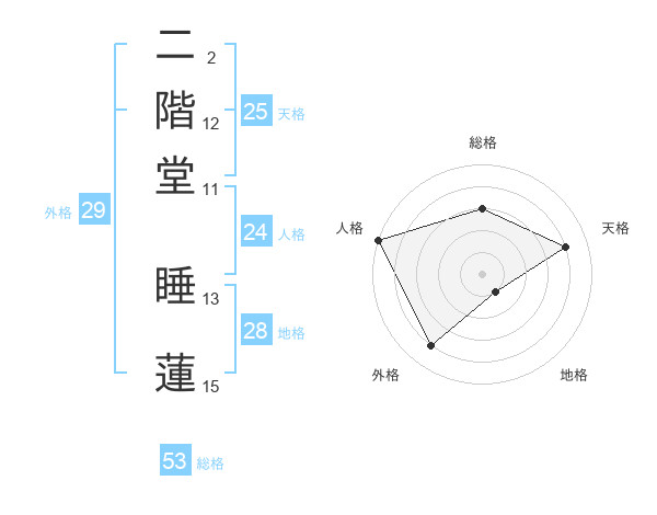二階堂 睡蓮さんの総格は53画の3点!