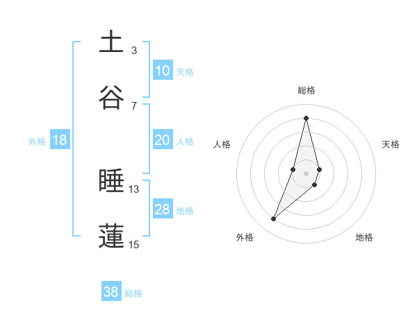 土谷 睡蓮さんを姓名の画数から五運を鑑定