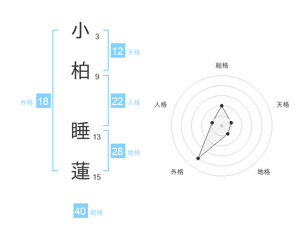 小柏 睡蓮さんの天格は12画の1点!