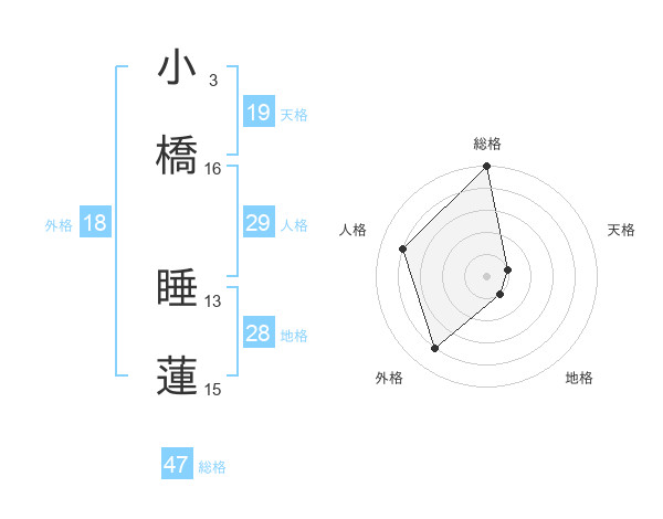 小橋 睡蓮さんを姓名の画数から五運を鑑定