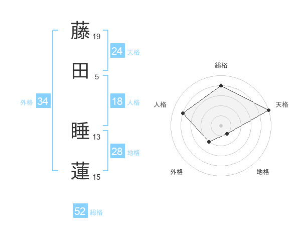 藤田 睡蓮さんを姓名の画数から五運を鑑定