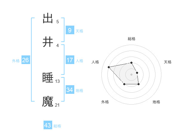 出井 睡魔さんを姓名の画数から五運を鑑定