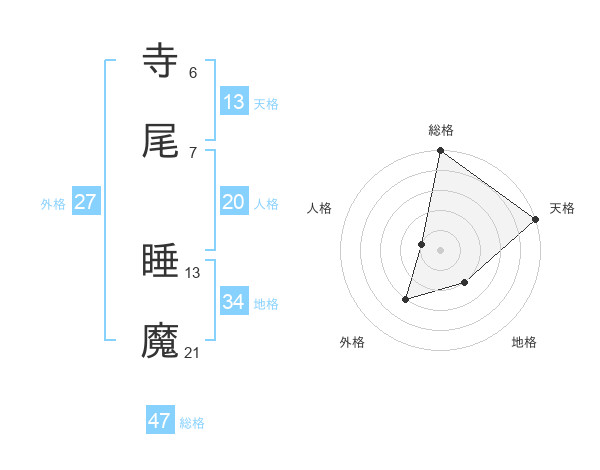 寺尾 睡魔さんを姓名の画数から五運を鑑定
