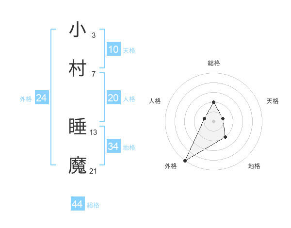 小村 睡魔さんを姓名の画数から五運を鑑定
