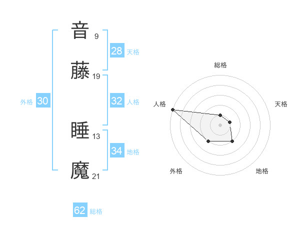 音藤 睡魔さんを姓名の画数から五運を鑑定