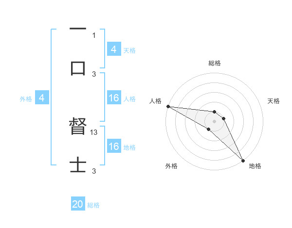 家系が持つ宿命的な運勢を表します。祖先から受け継いだ苗字ですので自分の力が及びません。家柄を象徴します。