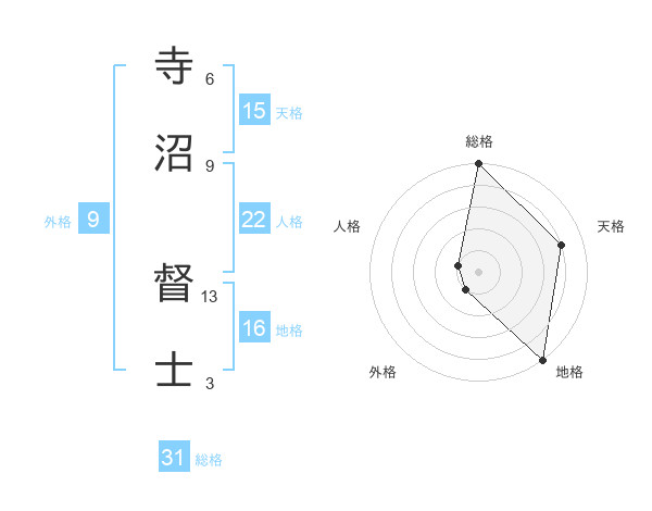 寺沼 督士さんを姓名の画数から五運を鑑定