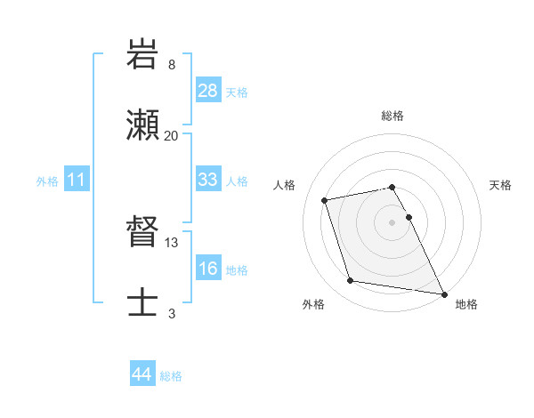 岩瀬 督士さんを姓名の画数から五運を鑑定