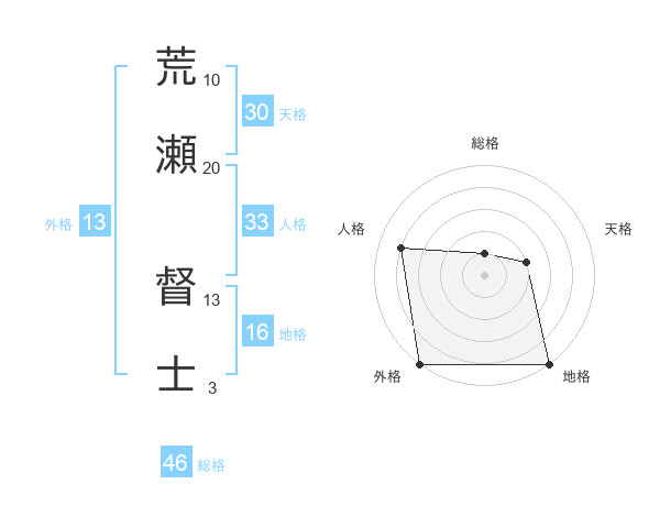 荒瀬 督士さんの外格は13画の5点!