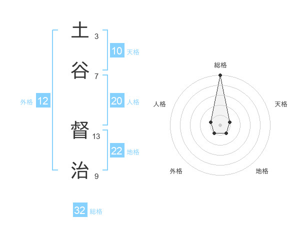土谷 督治さんの総格は32画の5点!