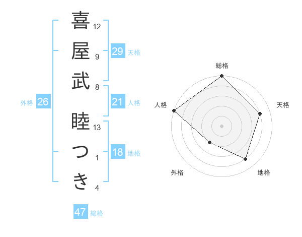 喜屋武 睦つきさんの総格は47画の5点!