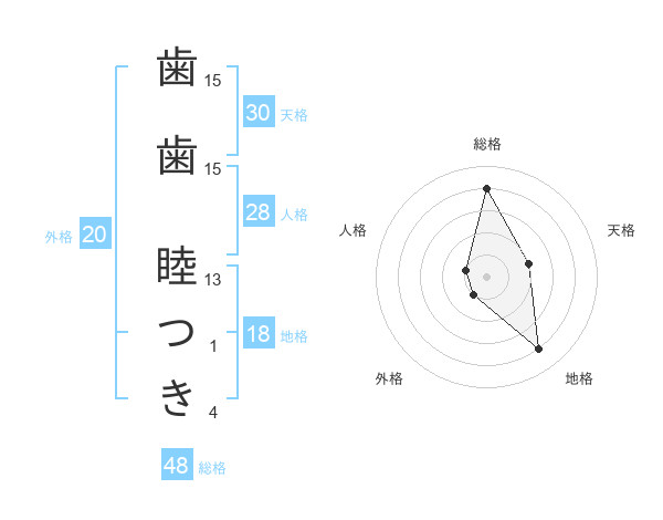 歯歯 睦つきさんの総格は48画の4点!