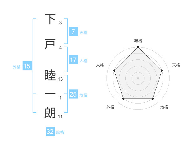 下戸 睦一朗さんを姓名の画数から五運を鑑定