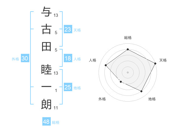 与古田 睦一朗さんを姓名の画数から五運を鑑定