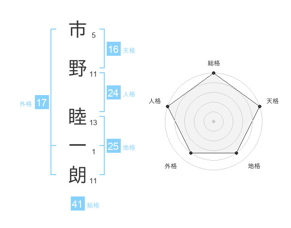市野 睦一朗さんを姓名の画数から五運を鑑定