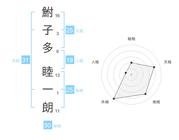 鮒子多 睦一朗さんを姓名の画数から五運を鑑定