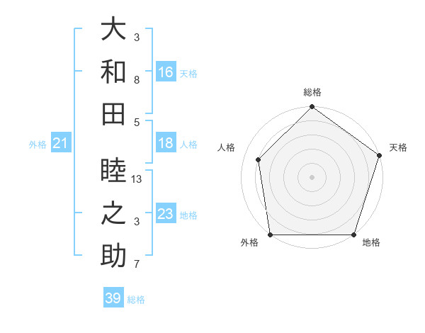 大和田 睦之助さんを姓名の画数から五運を鑑定