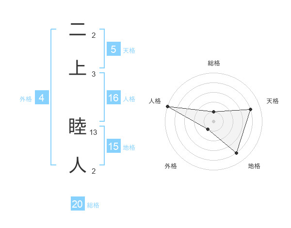 二上 睦人さんの総格は20画の1点!
