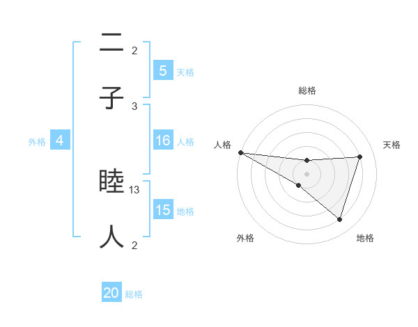 二子 睦人さんの総格は20画の1点!