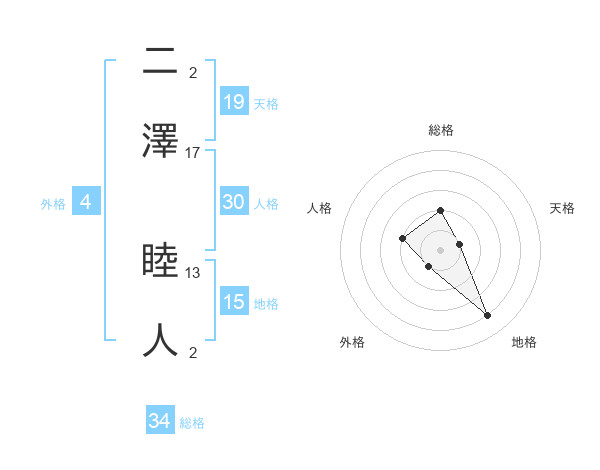二澤 睦人さんの総格は34画の2点!