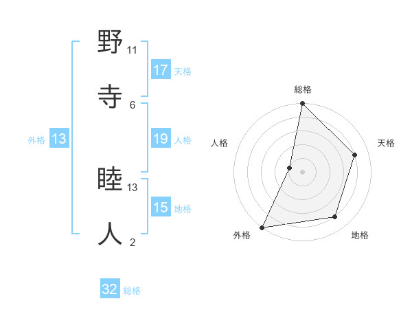 野寺 睦人さんの外格は13画の5点!
