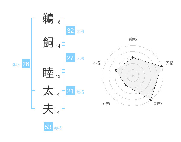 鵜飼 睦太夫さんの総格は53画の3点!