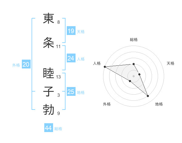 東条 睦子勃さんの総格は44画の2点!