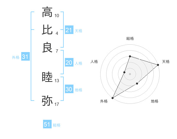 高比良 睦弥さんの総格は51画の3点!