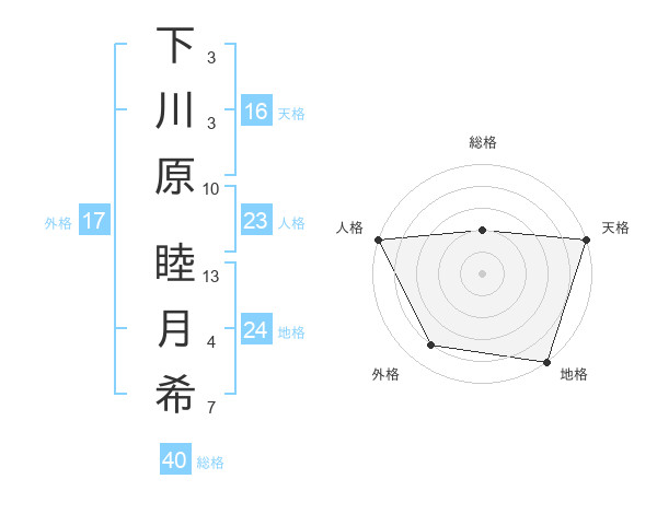 下川原 睦月希さんを姓名の画数から五運を鑑定