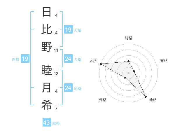 日比野 睦月希さんの総格は43画の2点
