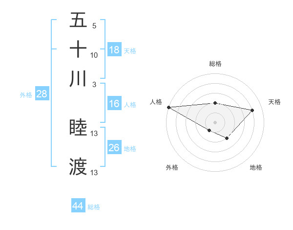 五十川 睦渡さんを姓名の画数から五運を鑑定