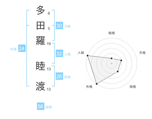 多田羅 睦渡さんを姓名の画数から五運を鑑定