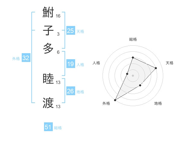鮒子多 睦渡さんを姓名の画数から五運を鑑定