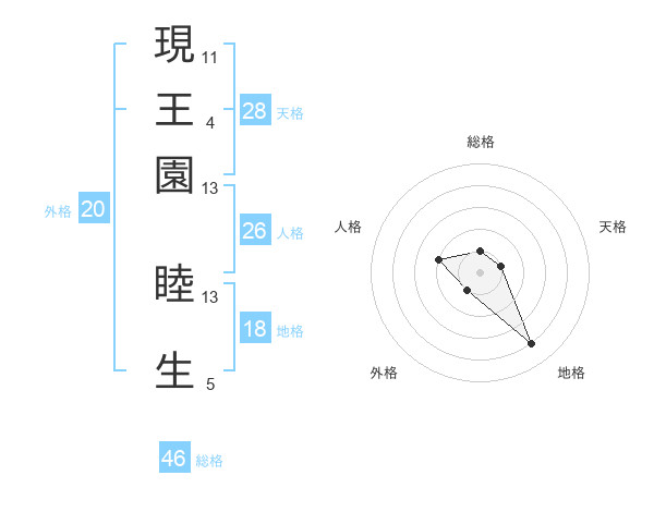 現王園 睦生さんを姓名の画数から五運を鑑定