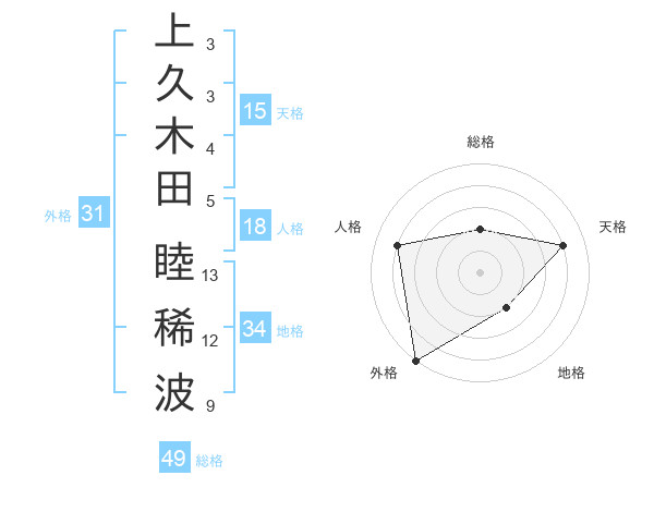 上久木田 睦稀波さんを姓名の画数から五運を鑑定