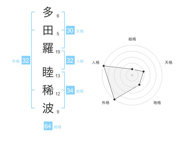 多田羅 睦稀波さんを姓名の画数から五運を鑑定