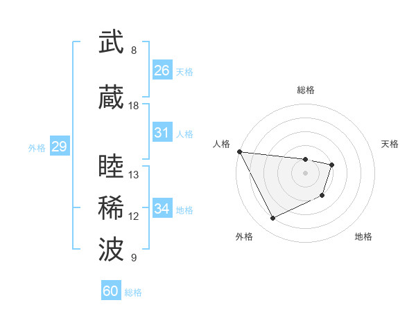 武蔵 睦稀波さんの総格は60画の1点!