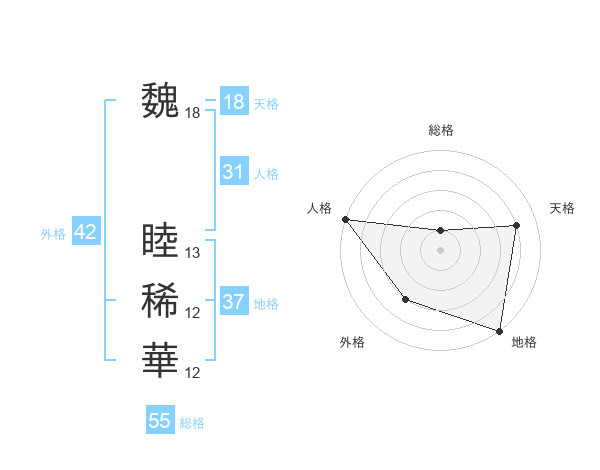 魏 睦稀華さんの総格は55画の1点!