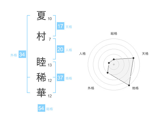 夏村 睦稀華さんを姓名の画数から五運を鑑定