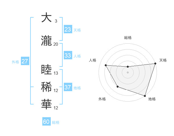大瀧 睦稀華さんを姓名の画数から五運を鑑定