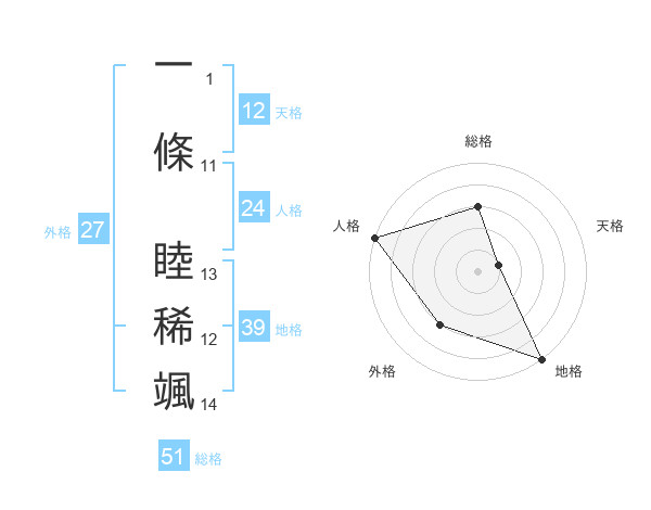 一條 睦稀颯さんを姓名の画数から五運を鑑定
