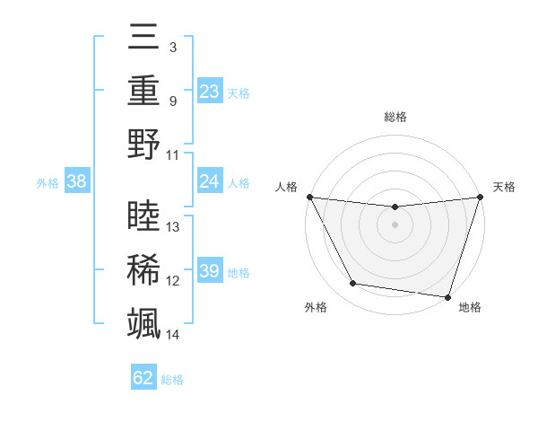 三重野 睦稀颯さんの外格は38画の4点!