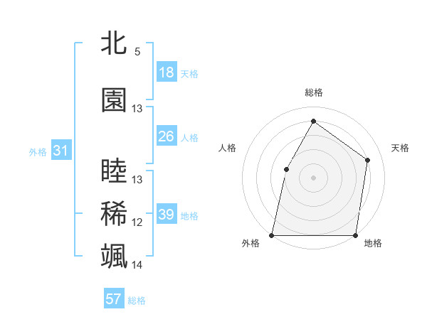 北園 睦稀颯さんを姓名の画数から五運を鑑定