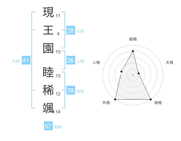 現王園 睦稀颯さんを姓名の画数から五運を鑑定