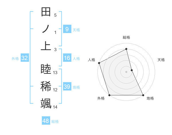 田ノ上 睦稀颯さんの外格は32画の5点!
