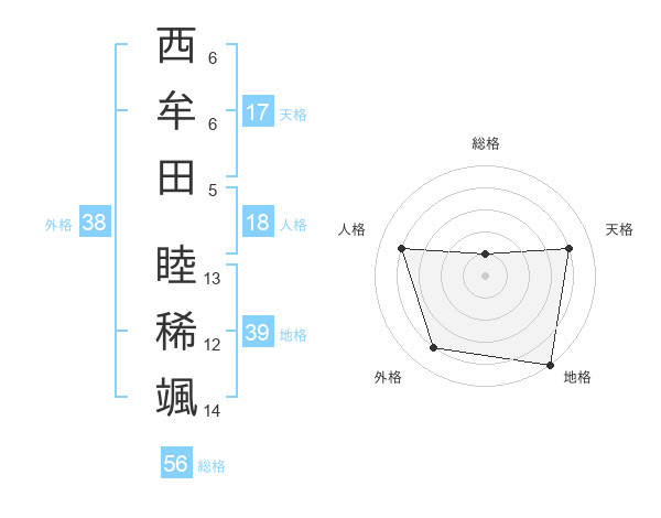 西牟田 睦稀颯さんを姓名の画数から五運を鑑定