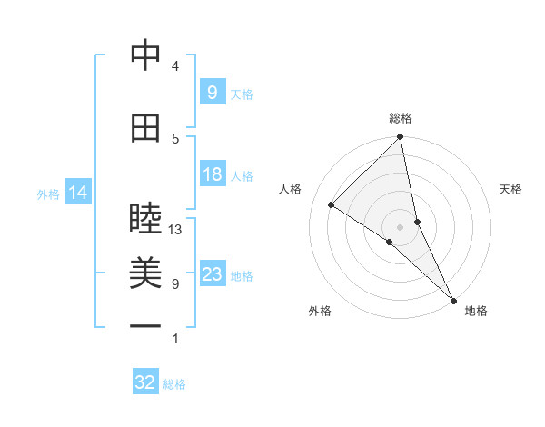 中田 睦美一さんの総格は32画の5点!
